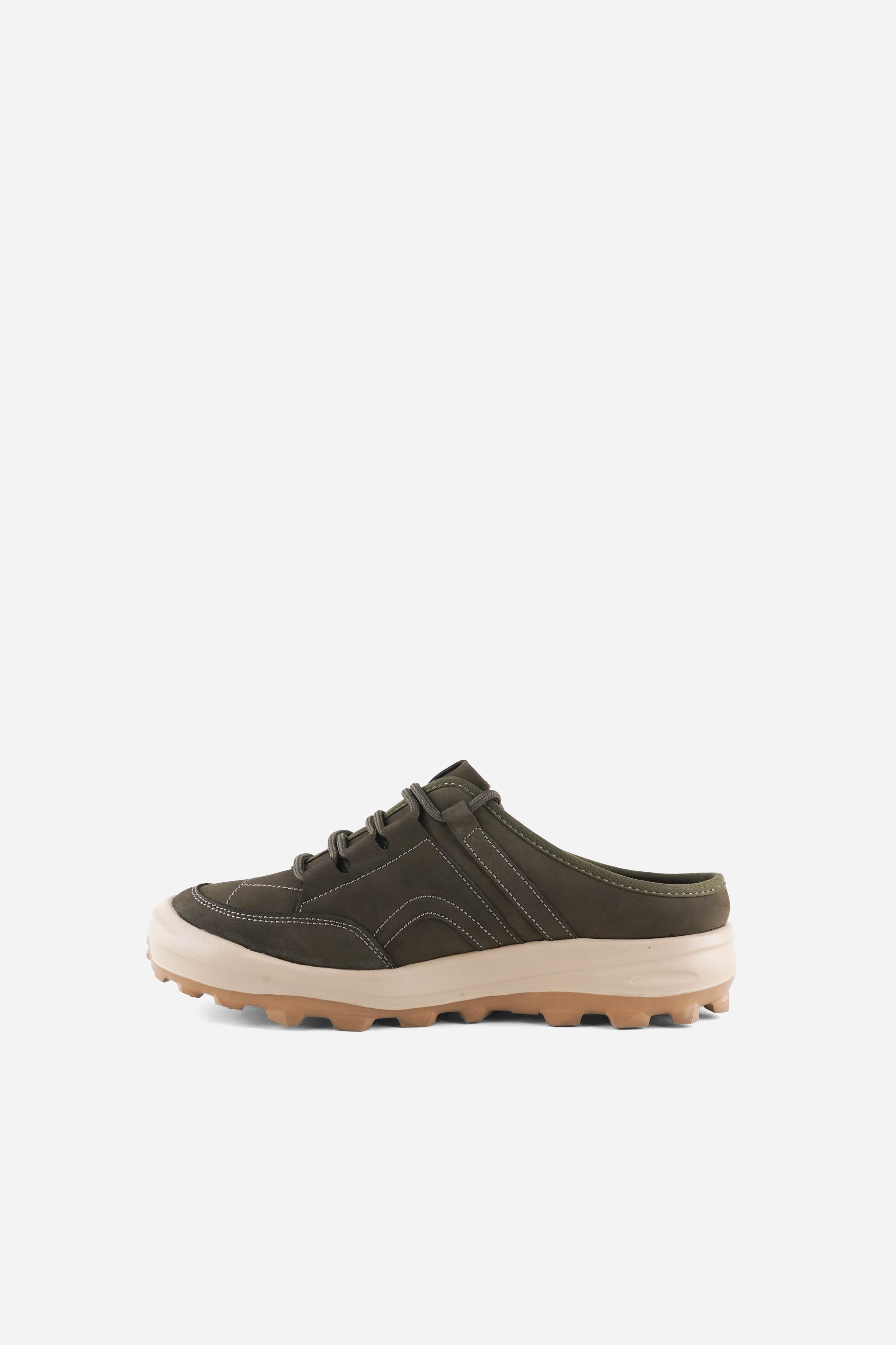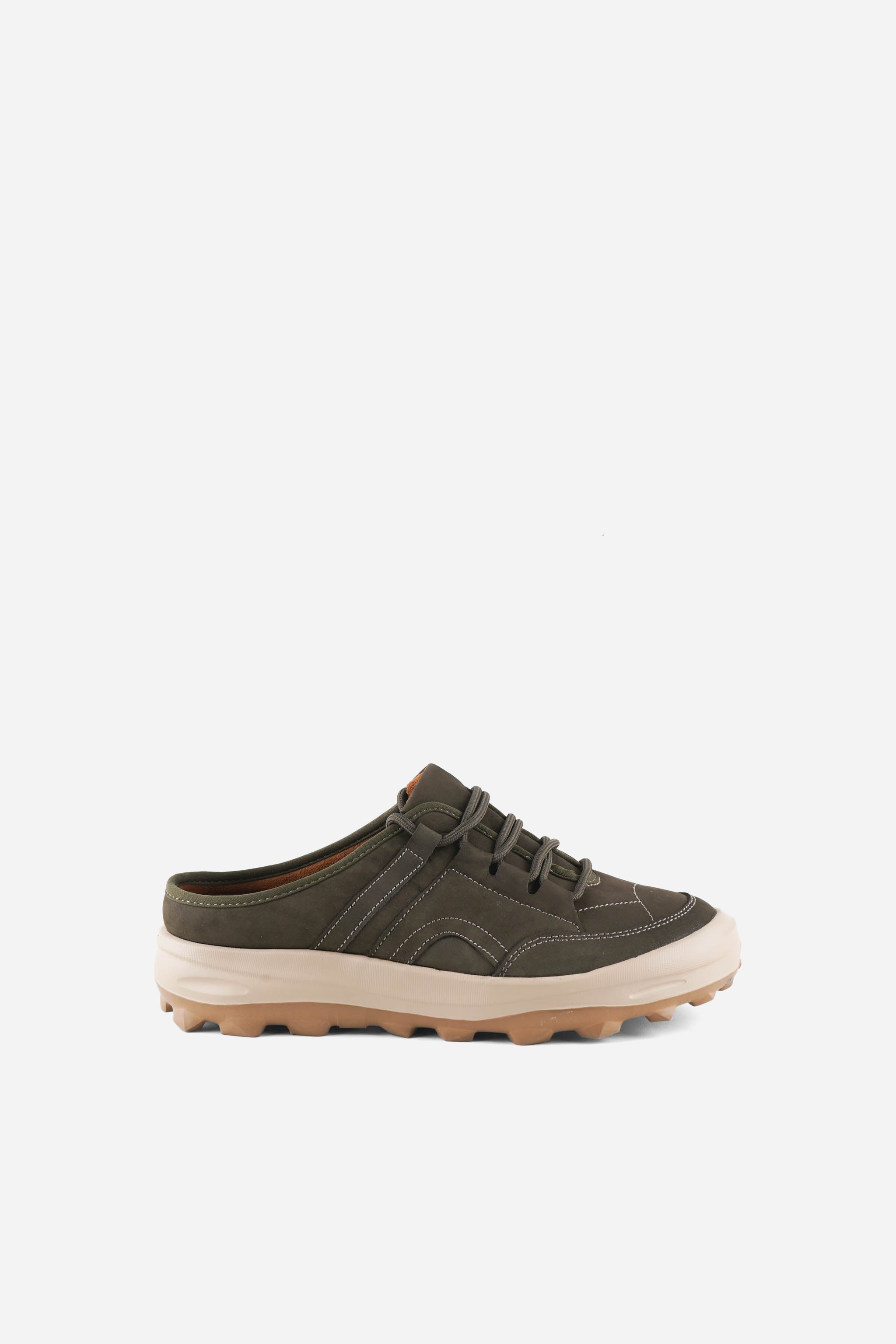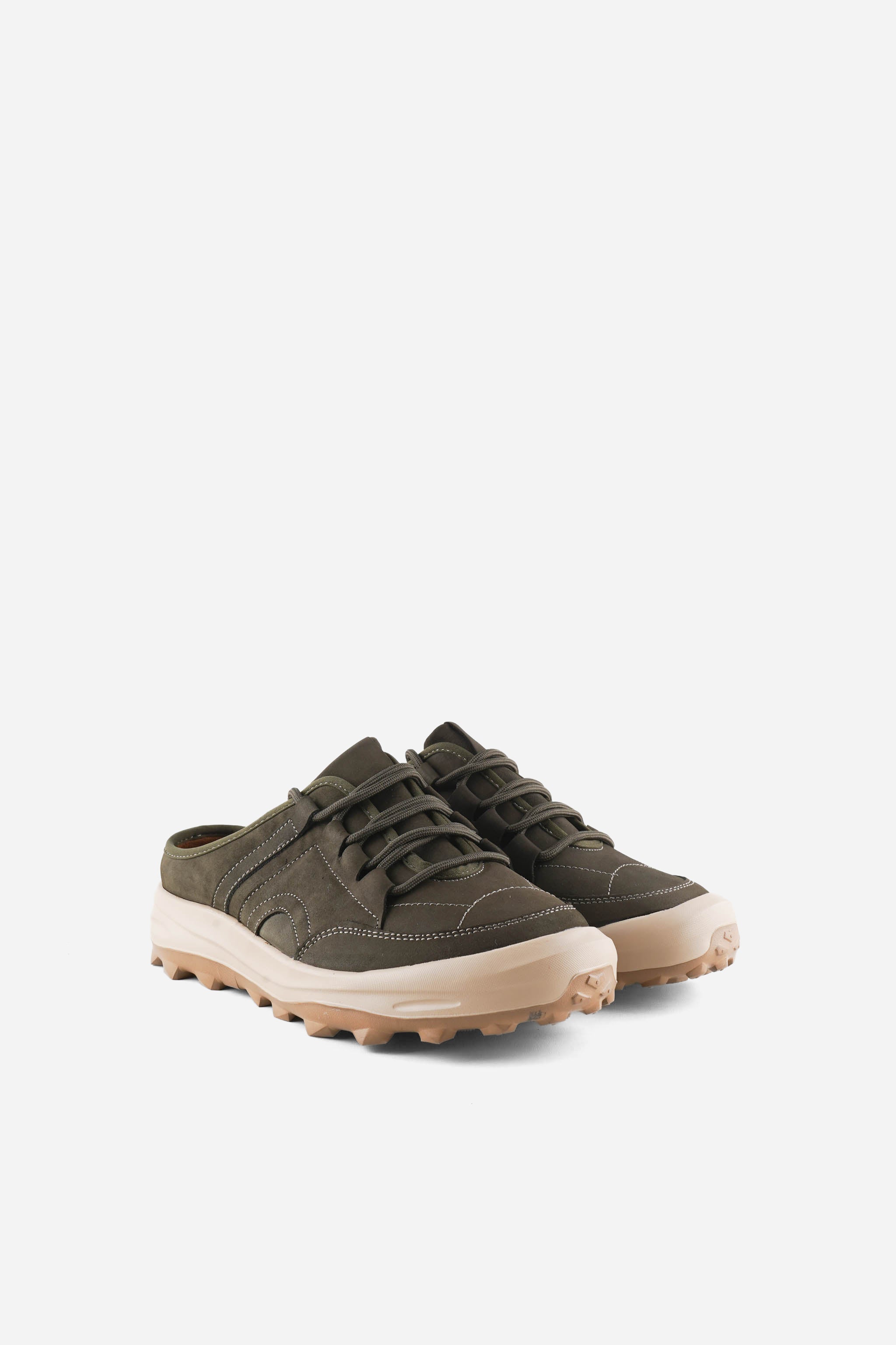 IGOR 1CG adalah slip on mules bergaya sporty–modern dengan upper nubuck leather bertekstur matte yang terlihat premium. Detail stitching tegas dan lace-style fixed memberi tampilan seperti sneakers, namun tetap praktis dan mudah dipakai. Siluetnya kokoh tapi rapi, pas untuk aktivitas harian.