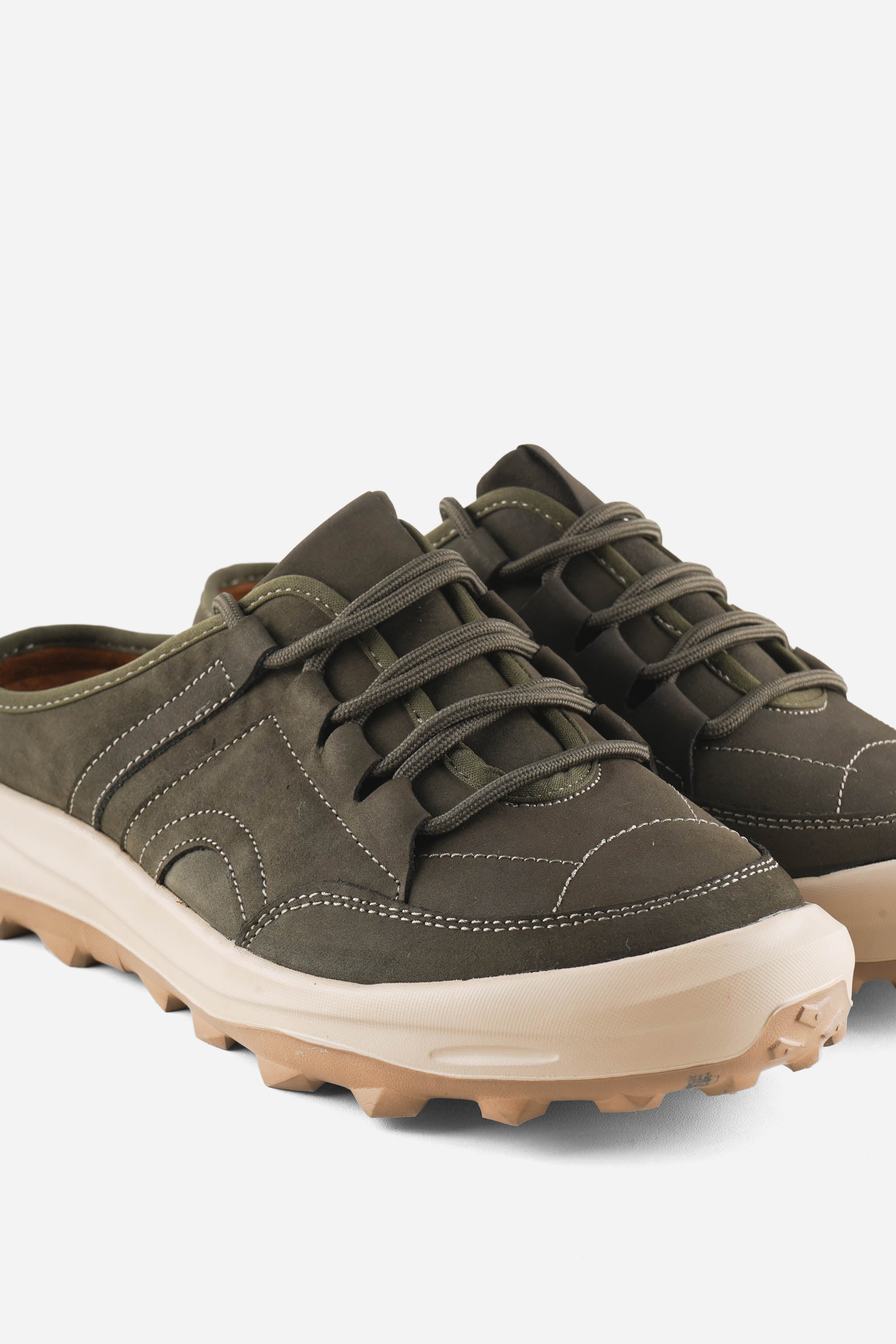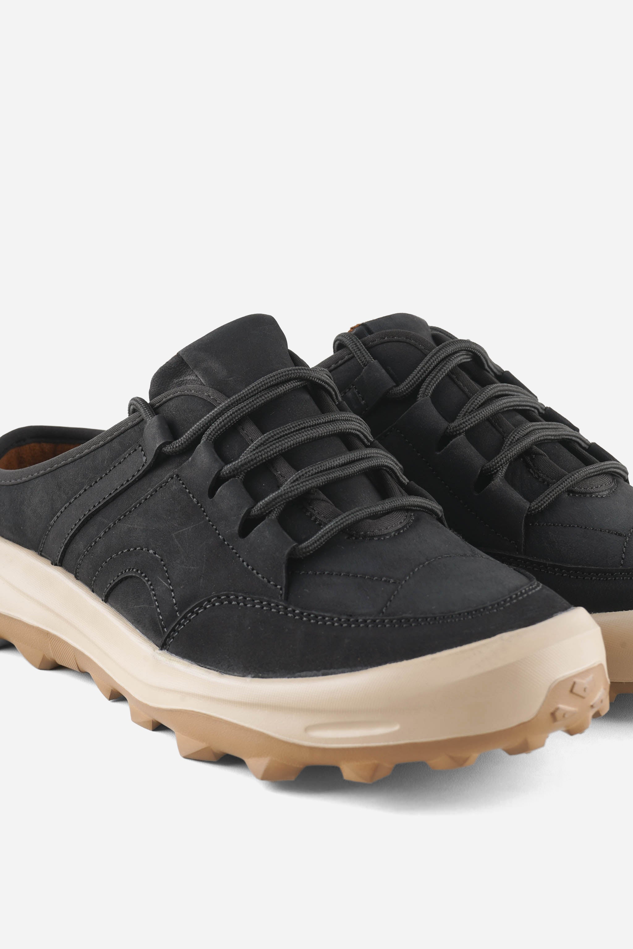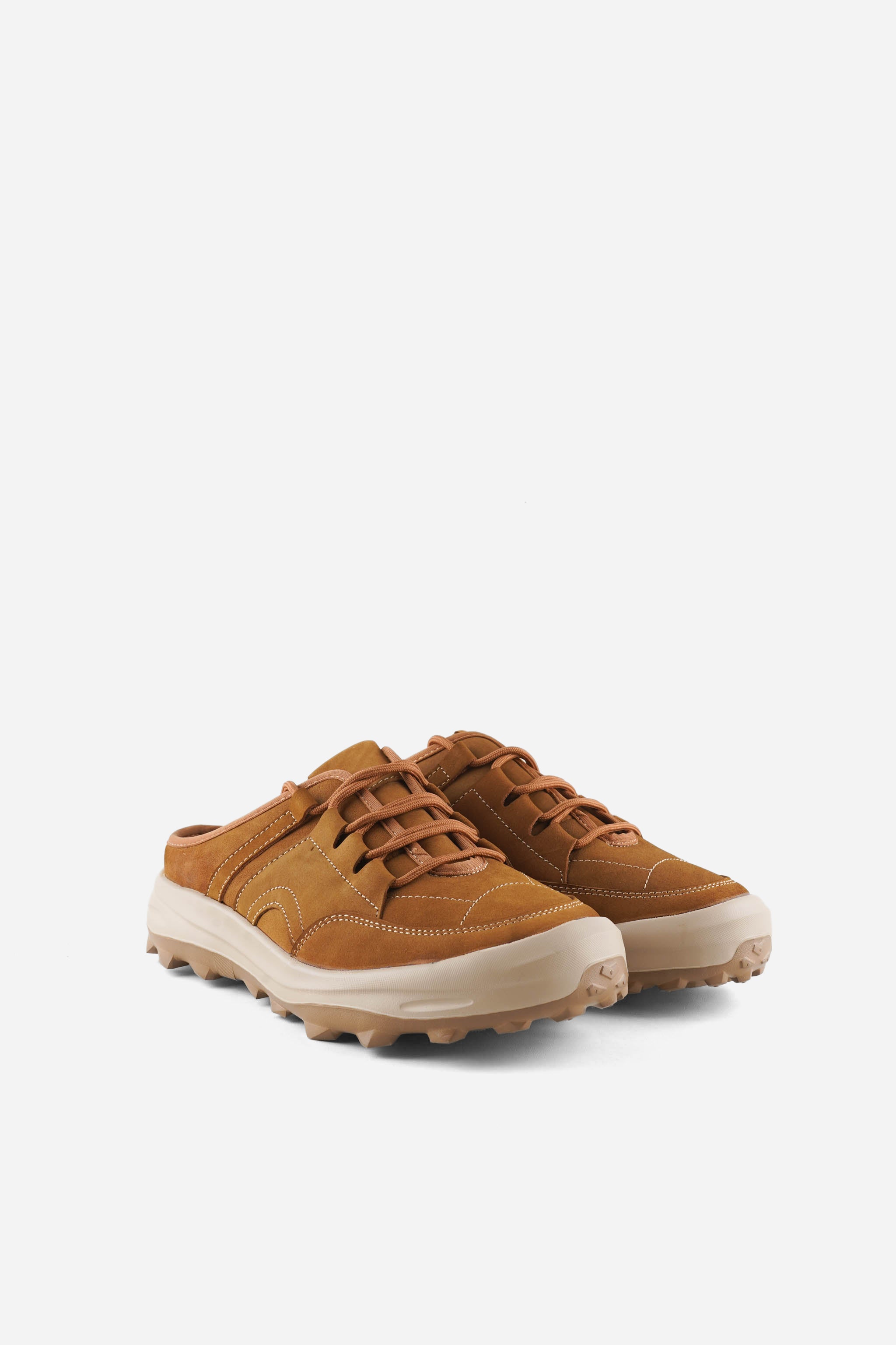 IGOR 1CG adalah slip on mules bergaya sporty–modern dengan upper nubuck leather bertekstur matte yang terlihat premium. Detail stitching tegas dan lace-style fixed memberi tampilan seperti sneakers, namun tetap praktis dan mudah dipakai. Siluetnya kokoh tapi rapi, pas untuk aktivitas harian.
